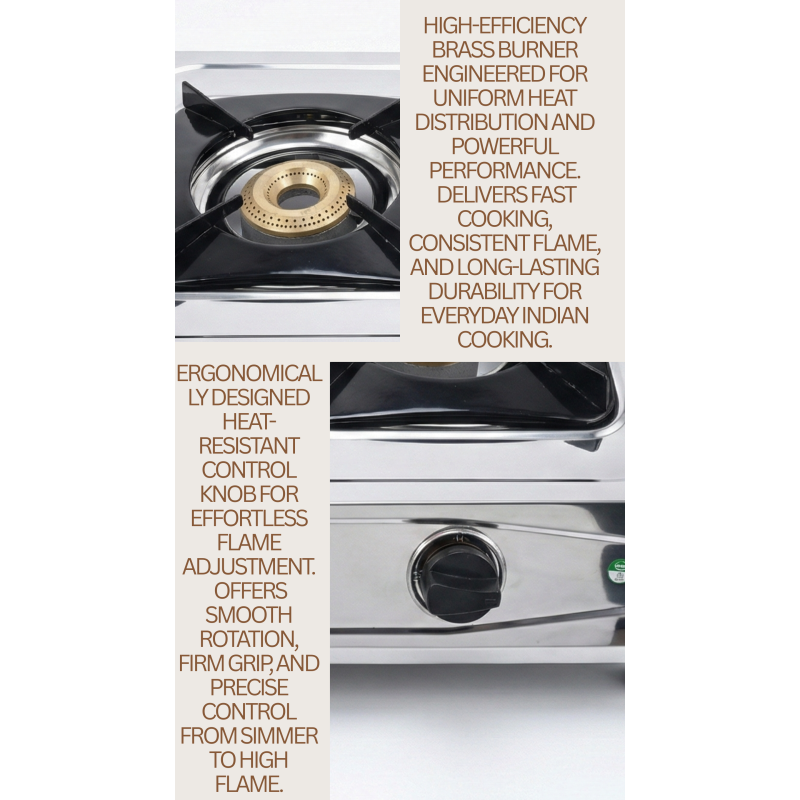 The KTECH STAINLESS STEEL SINGLE BURNER GAS STOVE is the perfect solution for compact kitchens, bach..