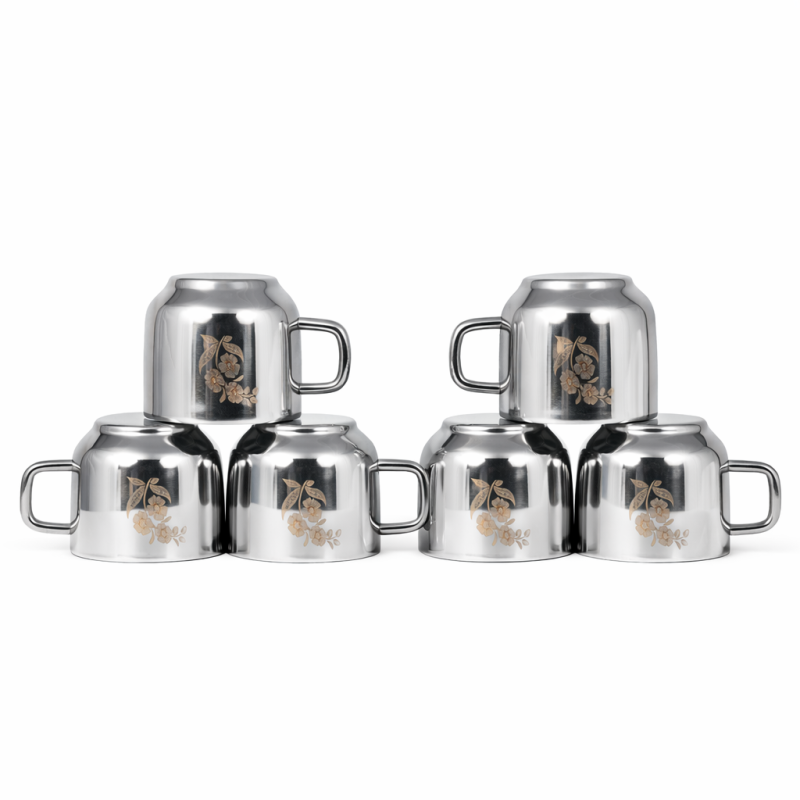 KTECH STAINLESS STEEL DOUBLE WALL TEA CUP 6 PCS SET