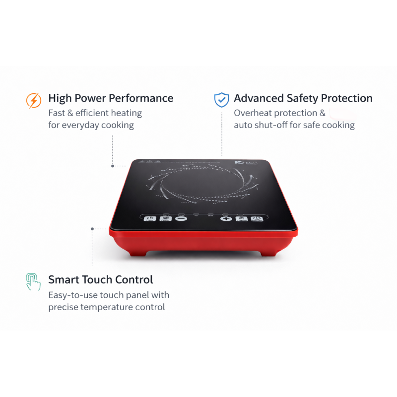 The Ktech Induction Cooktop brings high-tech efficiency to the traditional Indian kitchen. 🍳 Designed for modern homes where time and safety are paramount, this cooktop uses advanced electromagnetic technology to heat the vessel directly, almost zero heat loss. 🌡️ With pre-programmed Indian cooking menus—including specific settings for Idli, Dosa, Curry, and Milk—it simplifies daily chores at the touch of a button. 🏗️ Compact, easy to clean, and the Ktech Induction Cooktop is the perfect companion for students, busy professionals, and modern families. ✨✅