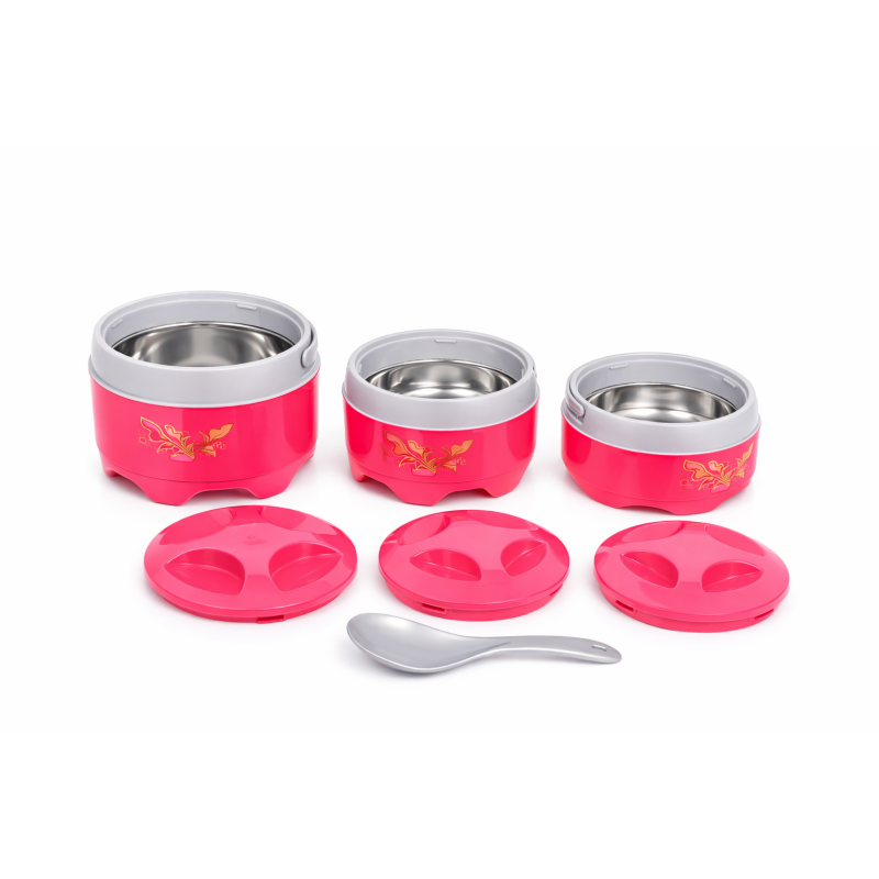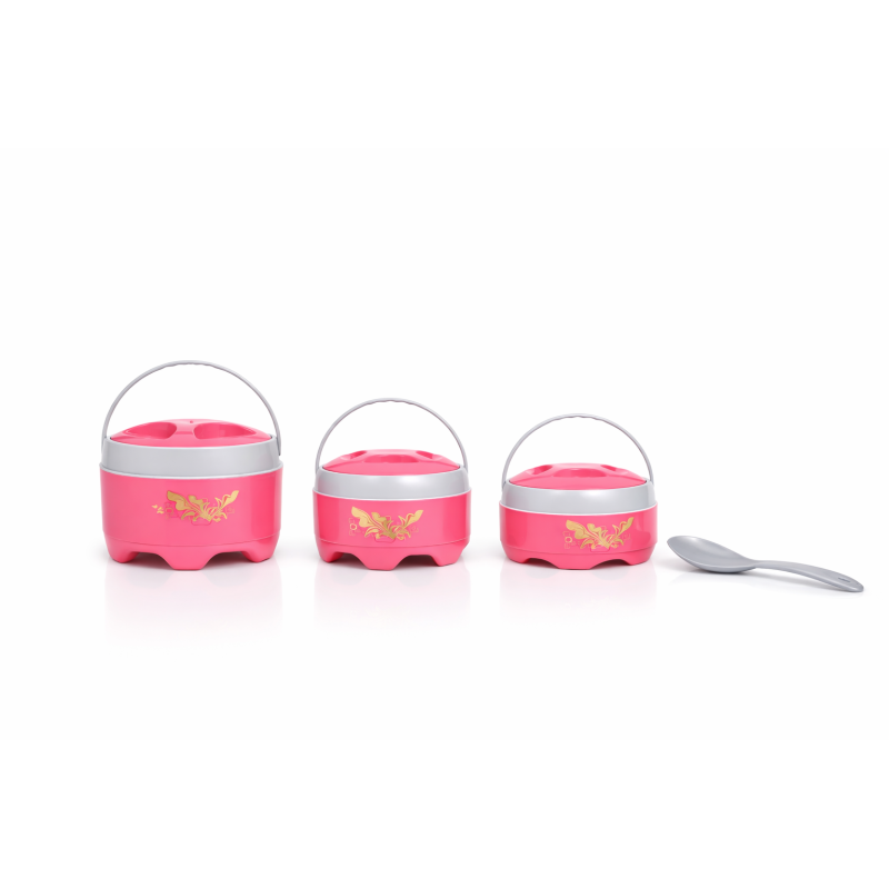 The INSULATED CASSEROLE 3 PCS SET (ALX) is the pinnacle of our heavy-duty thermal serving collection. Designed for households that prioritize durability and long-lasting heat retention, the ALX series features a rugged, impact-resistant exterior in a professional color scheme, accented with premium floral motifs. This set provides a versatile, graduated storage solution for entire meals, ensuring that your Food stays "kitchen-hot" from the first serving to the last. Built with thick stainless steel inner linings, the ALX set is your reliable companion for daily family dining and festive hosting.