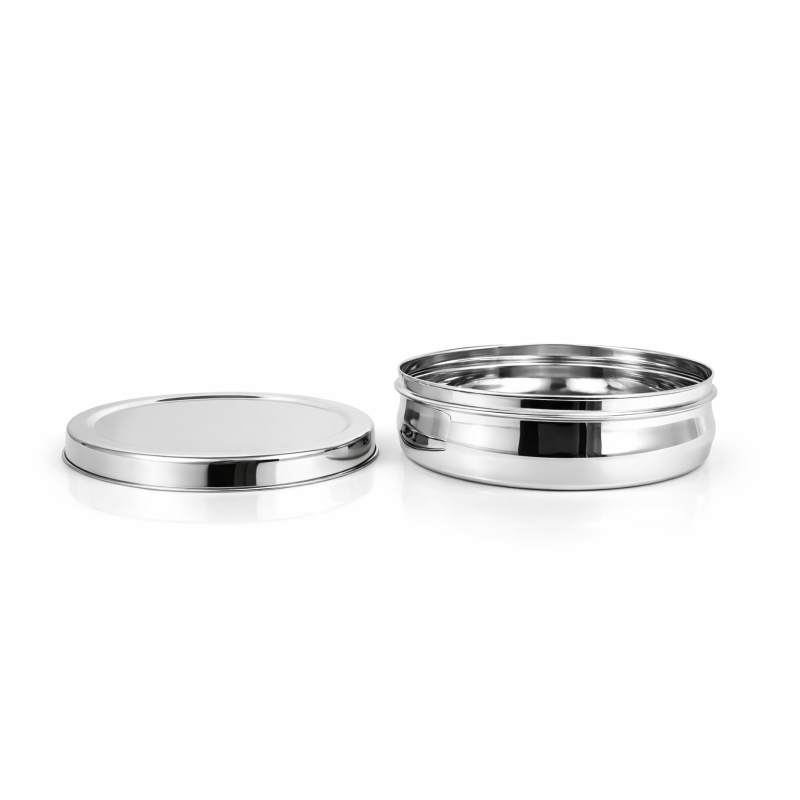 Its mirror-polished finish gives a premium look, while the tight-fitting lid helps retain heat and freshness. Ideal for home kitchens, hotels, catering services, and restaurants, this chapati dabba is easy to clean, stackable, and long-lasting.